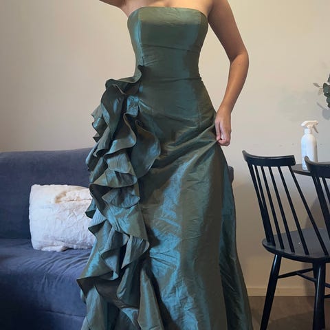 wanhojen mekko kokoa S mutta mekossa on säätö varaa. Mekon pituus on olkaimesta helmaan noin 155 cm.