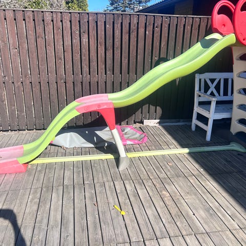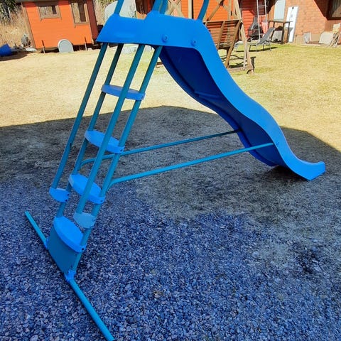 Myydään hyväkuntoinen ja tukeva metallinen liukumäki. Koko: istuma korkeus 166 cm ja kokonaiskorkeus 213 cm, pituus 383 cm. Liukuma kohdan ja portaiden leveys 52 cm, kokonaisleveys 201 cm. Liukumapinta on rst - pinnalla, joka on ehjä. Liukumäki on 2025 kesällä kunnostettu. Runko on teräsraepuhallettu, metalliosat tarkastettu ja huonot uusittu, sen jälkeen pohja- ja pintamaalattu valkoiseksi, ylätason puuosat uusittu.