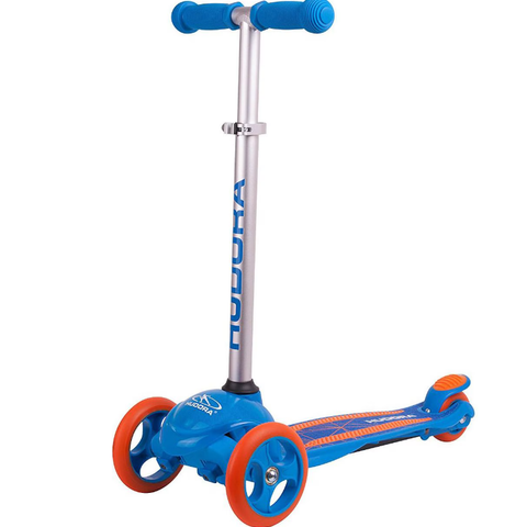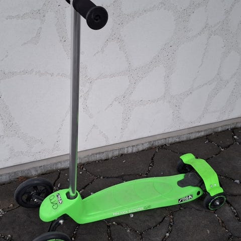 Uudenlainen potkulauta pienille lapsille. Kolmipyöräinen malli auttaa pienimpiä pysymään tasapainossa. Edessä on pieni kori pehmolelulle tai muille aarteille.