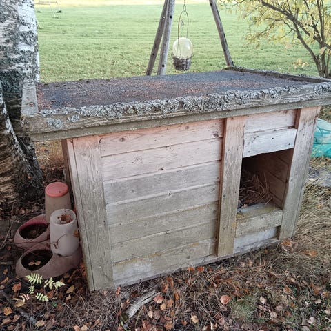 Eristetty 2-osainen koirankoppi. Koppi hyvässä kunnossa, mukaan saa halutessaan myös heikossa kunnossa olevan ”katon”.
