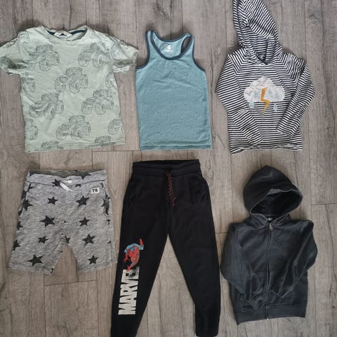 Siistissä käytetyssä kunnossa oleva vaatesetti.