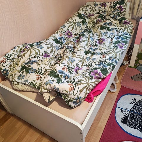 Sängyn tarkat tiedot: https://www.ikea.com/fi/fi/p/kritter-saengynrunko-ja-saelepohja-valkoinen-s69185435/