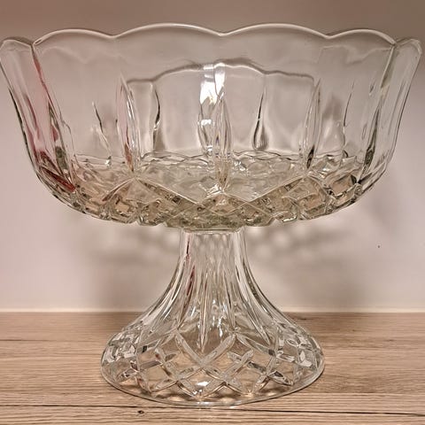 Lasinen jalallinen tarjoilukulho, huom: viallinen!