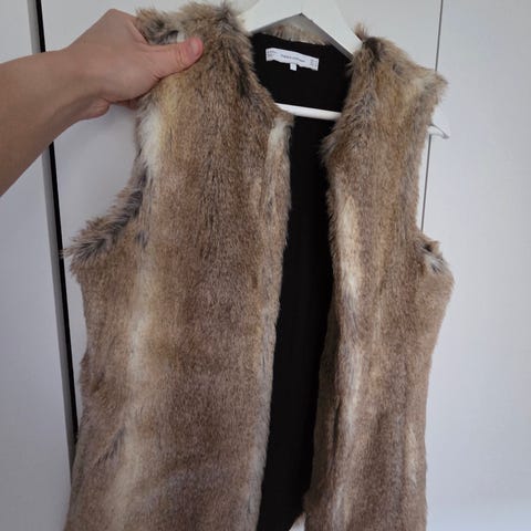 Valkoinen karvaliivi vyöllä, Seppälä Woman, koko S (ovh 39,95€)