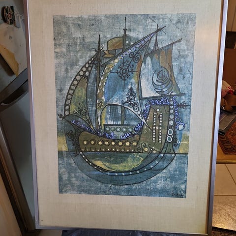 Rune Ånmanin vedos 30/30 "Pyörremyrsky" vuodelta 1965. Työn korkeus on 35 cm ja leveys 44 cm. Lasikehys 55 X 61 cm.
