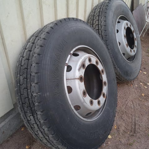 Matador 385/65r22 kuorma-auton renkaat 2kpl uutta rengasra vanteilla tasapainoitettuna ja 1kpl ilman vannnetta.
