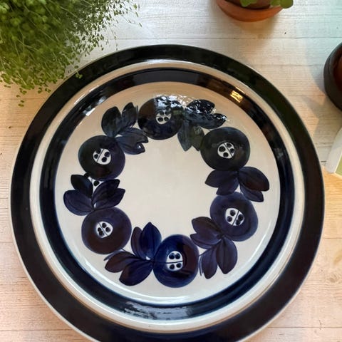 Ulla Procopén Arabialle suunnitteleman käsinmaalatun Anemone-sarjan kahvikannu. Koriste oli tuotannossa S-mallin astioissa v. 1962-76.