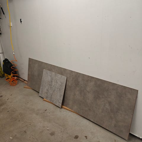 Keittiö remontista ylimääräiseksi jäänyt Kensan välitilalevy pystytiilikuvio ja sävy "Metsä". Leveys 1795mm ja korkeus 626mm. Kuvissa näkyy myös leikattu reuna.