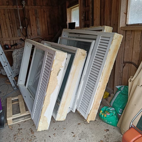 Ostetaan ikkunoita karmeineen hirsitalon kuistin tekoon, 6 kpl koko noin 80-90*140-150, tarjoa!