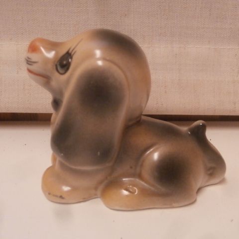 Pieni kauris-figuuri, vintagea. 1950 luku. Valmistaja Szeiler Pottery, great Britain. Korkeus 4,5 cm, pituus 4,5 cm, leveys 2,5 cm. Ehjä ja siisti, pohjassa massaleima. Postitus tai nouto.