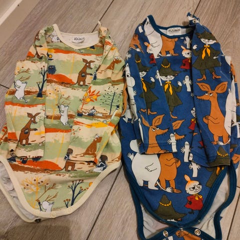 Muumi body 86, kunto muuten hyvä, mutta pieni tahra rinnan kohdalla (näkyy kuvassa)