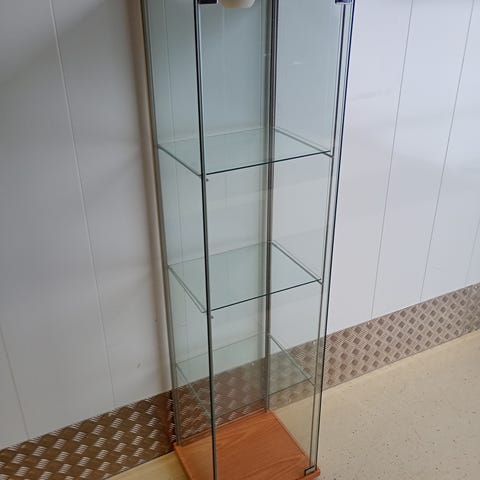 lasihyllyt, tummennetut lasiovet, 2kpl tornikaappeja