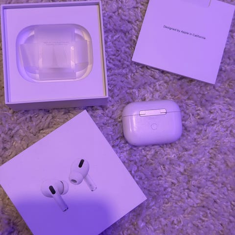 Myyn ensimmäisen sukupolven AirPods Pro -kuulokkeet. Hyvässä kunnossa, mukaan lukien kotelo, latauskaapeli (Lightning), pakkaus ja M/L-korvatyynyt (käyttämättömät). Oikealla puolella on mikrofoniongelma et se ei valitevasti toimii, vasen puoli toimii normaalisti. Oikean puolen mikrofonin ongelmien vuoksi tilojen käytössä kuuluu surinaa, mutta se toimii silti täysin molempien tilojen ollessa pois päältä. Akunkesto on melko hyvä ja naarmuja on normaalin käytön jäljiltä. Mukana muovikotelo latauskotelolle.