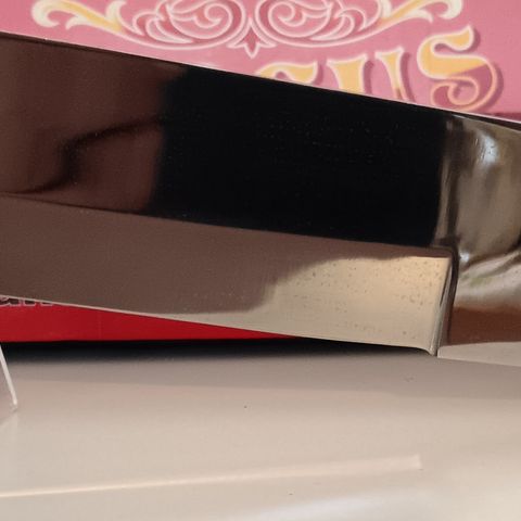 Materiaali D2 ruostumaton teräs kiilloitettu peilikirkkaaksi, teräkovuus 56-58 HRC. Väisti on messinkiä, kahva tiikkiä ja ponsi micartaa.