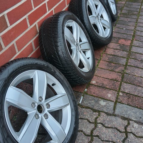 Vw golf mk7:ssa olleet kitkarenkaat dezent mustilla vanteilla. Vanteet todella hyvässä kunnossa. Renkaissa on 2 huonoa ja 2 hyvää rengasta