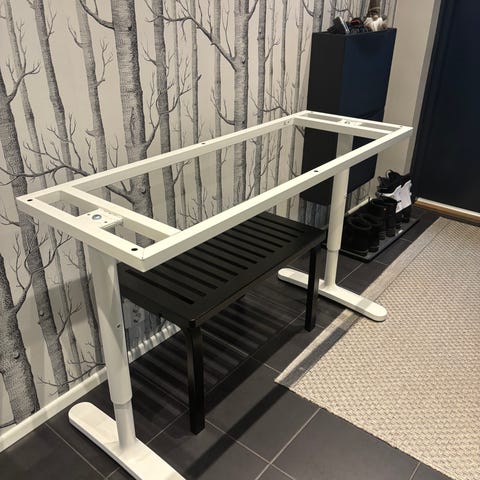2 kpl kuvanmukaisia toimistopöydän jalkoja, pöytätasoa tukevalla palkilla. Jalkojen korkeus säädettävissä. Erittäin jämäkät.