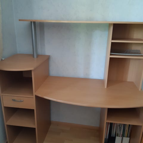 Myydään koulu-/kirjoituspöytä laatikostolla. Käytetty kunto, jonkun verran kulumaa pinnassa. Nouto Vääksystä. Mmm