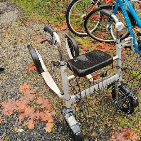 Vasen jarru toimii, mutta on rikki. Tarvitsee korjauksen.
