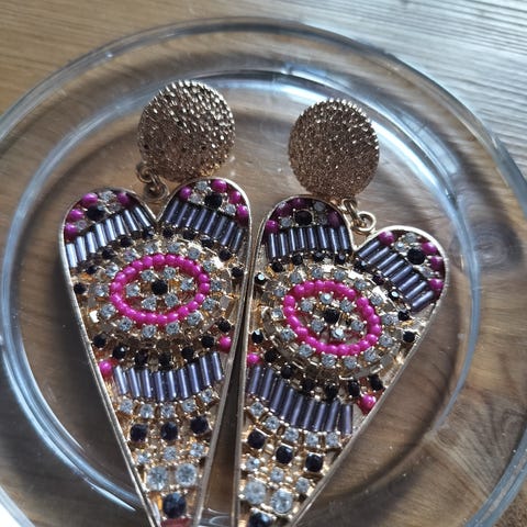 Kahdella sydämellä ja yhdellä helmellä. Pituus 6cm.