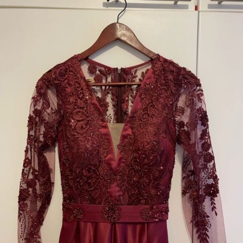 Myydään kerran käytetty vanhojentanssimekko. Koko S. Lyhennetty 164cm tytölle korkokengillä ja vannehameella. Vannehameen saa halutessaan mukaan.