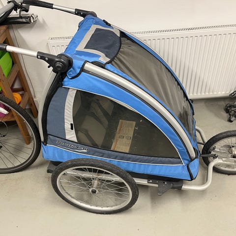 Preecosta 2021 hankittu vähän käytetty polkupyörän peräkärry, joka mukana tulevilla osilla muokattavissa juoksukärryksi.