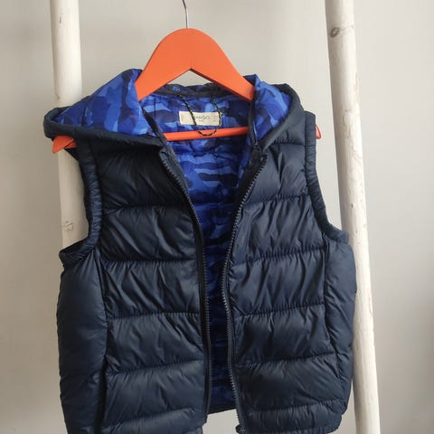Polarn O. Pyret lasten liivi, väri harmaa, koko 116. Unisex-malli, soveltuu sekä tytöille että pojille. Materiaali ja rakenne kuvissa näkyvät, liivissä on painonapit ja heijastinnauha. Soveltuu käytettäväksi ulkovaatteena viileämmällä säällä.