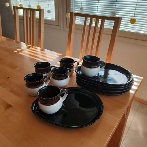 Uutta vastaava Kermansaven aamupalasetti 2 x kuppi 2x lautanen. Lautanen pit 28 cm lev. 18 cm. Yht. 20€
