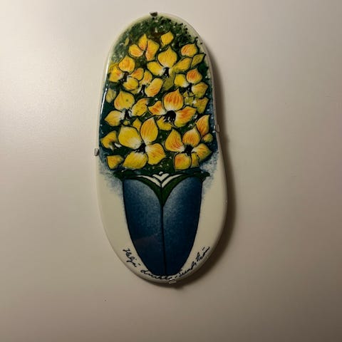 Uuden kodin seinää etsii keskikokoinen Heljä Liukko-Sundströmin kengänpohja keramiikkataulu.