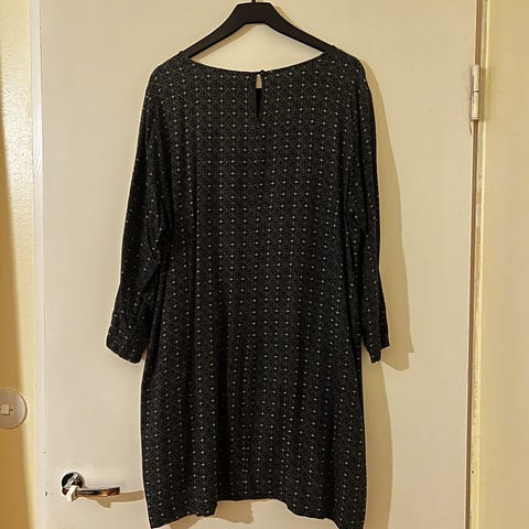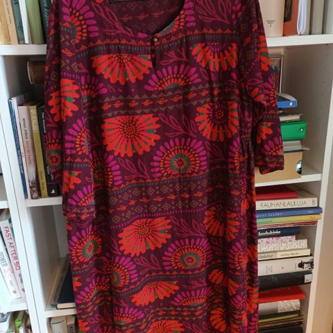 Myynnissä on M koon Gudrun Sjöden mekko. Koko on reilu ja menee myös L kokoa tavallisesti käyttävälle. Kunto kuin uusi. Materiaali 94% lyocell ja 6% elastaani eli joustaa hyvin. Sivusaumoissa taskut. Mittoja: pituus 102cm, kai-kai 49cm, hihan pituus kainalosta mitattuna 47cm.