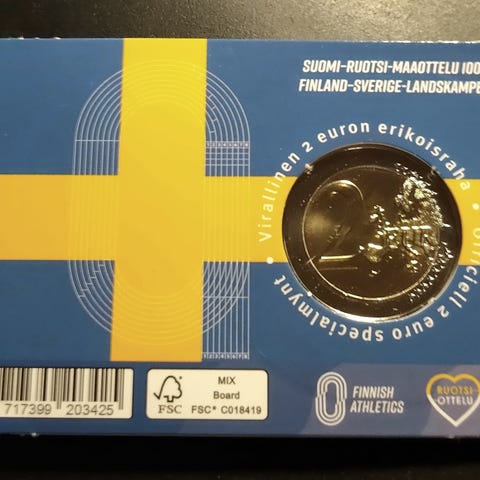 Suomi 2 eur 2025 juhlaraha Suomi Ruotsi maaottelu, COINCARD (eng)