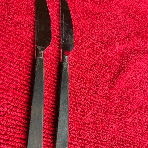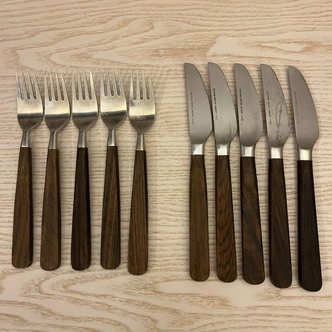 Myydään Bertel Gardbergin suunnittelemat ja Hackmanin valmistamat Lion de Luxe -ruokailuveitset (6 kpl). Pituus 20,2 cm.