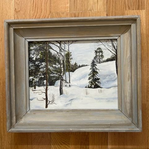 Tunnelmallinen talvimaisemataulu signeerauksella