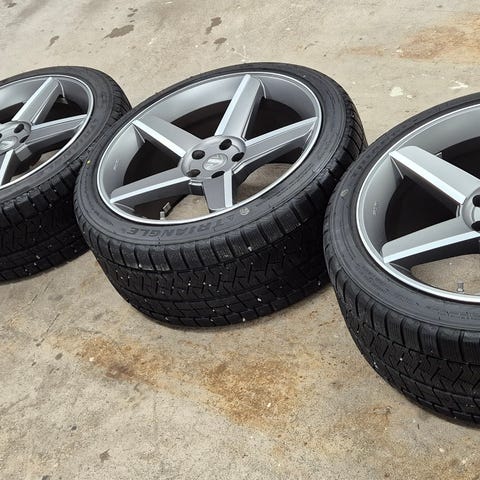 Värinä gunmetal grey, etuvanteet 19x8,5” et37 ja takavanteet 19x9,5” et43. Renkaat edessä 245/40 ja takana 275/35. Vanteet pinnoitettu gyeon rim pinnoitteella. Mersuun koodatut rengaspaineanturit kiinni, saa koodattua myös muille merkeille. Lisäkuvia haluaville.