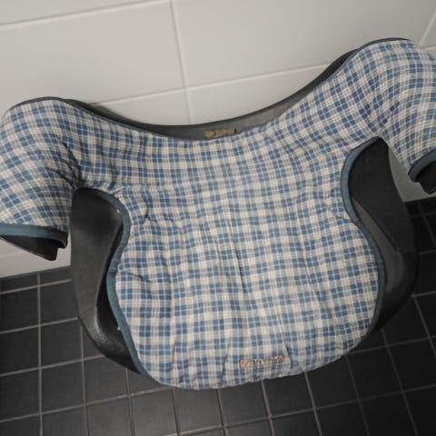 Nopea asentaa ja irrottaa, käytetään 3-pisteturvavyön kanssa. Kangas hieman nyppyyntynyt.