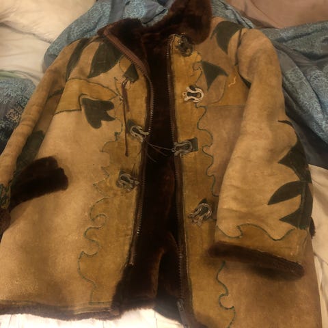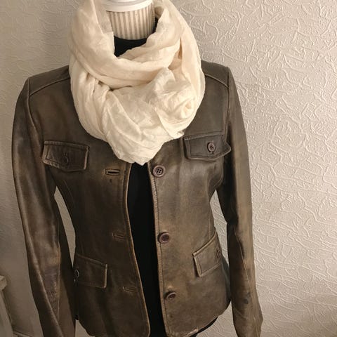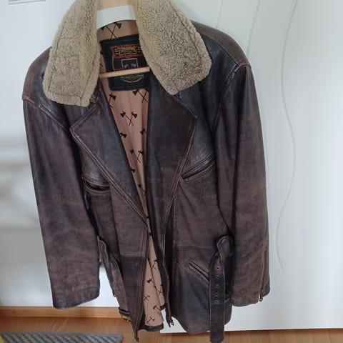 Ruskea tyylikäs naisten takki, koko L, valmistettu aidosta nahasta. Takissa on karvainen koriste, joka lisää tekstuuria ja erottuvuutta (aito turkis). Nahka on pehmeä. Kunto on erinomainen.