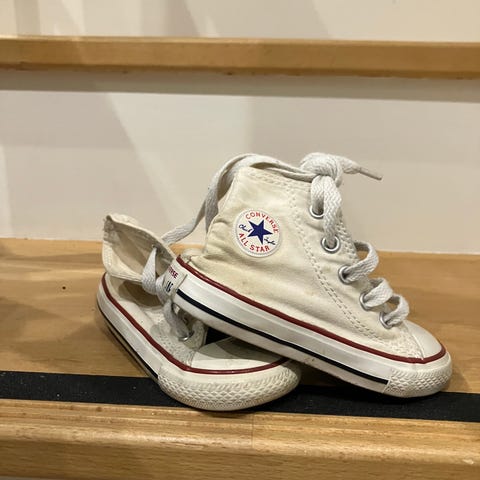 Converse Unisex Lasten Korkeavartiset Tennarit koko 22, musta kangasmateriaali, valkoiset nauhat ja kumipohja. Jääneet hyvin vähälle käytölle.