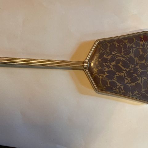 60-luvun vintagea edustava käsipeili. Muovia oleva varsi ja peilin reunukset. Molemminpuolisesti peili. Pituus 30cm, peilin halkaisija 9-11cm.Yläosasta muovissa halkeama näkyy kuvassa. Hieno sisustusesine!