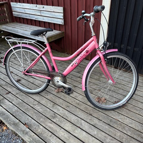 - Vaaleanpunainen, ruskea satula ja kahvat.