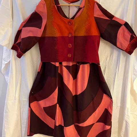 Babylon mekko/tunika koossa 36 ( IT 42 eli sopii 36 kokoisille). Kai-kai 47,5cm ja pituus niskasta helmaan 88,5cm. Takana vetoketju. Sivutaskut. Kaulakoru kuuluu mekkoon. Hinta 120e ( ovh yli 300e)