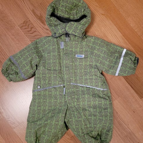 Lassie by Reima vihreä toppahaalari, koko 68. Vetoketju aukeaa kätevästi lahkeeseen asti, mikä helpottaa pukemista. Useita heijastimia. Irroitettava huppu.
