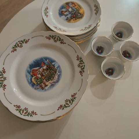 Löytyy 12kpl ruokalautasia 26cm ja 12kpl alkuruokalautasia 21cm + 2kpl kynttiläjalkaa. Koko sarja virheettömässä kunnossa. Pari lautasta on käytetty kerran, muuten täysin käyttämättömiä. Myyn mieluummin koko sarja kerrallaan. Löytyy Vaasasta. Postittaessa ostaja maksaa postikulut. Hinta koko pakettiin: 390€. La 22.11 tämä saa Vaasasta Espooseen ja sille välille.