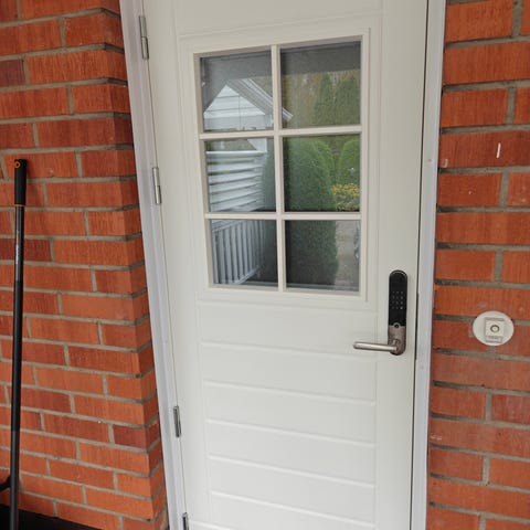 Mitat: korkeus 202cm, leveys 92cm ja syvyys 6cm. Ovi on uusi ja paketissa.