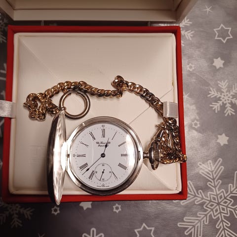 Hieno hopeinen (925 leima eli sterling-hopeaa) -taskukello ja 25cm ketju. Ei kaiverruksia tms. Jää käyttämättömäksi laatikkoon joten seuraavalle 🙏