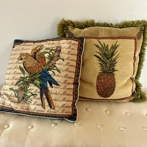 Tyynyjen värit hyvin raikkaita ja kirkkaita, vaikka kuvat eivät teekään oikeutta värien oikeille sävyille. Tyynyt käytettyjä, mutta puhtaita ja hyvin pidettyjä. Paksumpi tyyny 18 eur, ohuempi tyyny 15 eur.