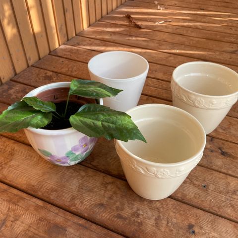 Kuvienmukaisia erittäin hyväkuntoisia kukkaruukkuja edullisesti pois nurkista pyörimästä. Hinnat vaihtelevat 0,50-3 euroon.