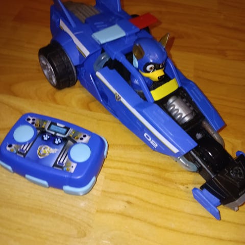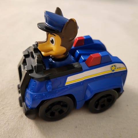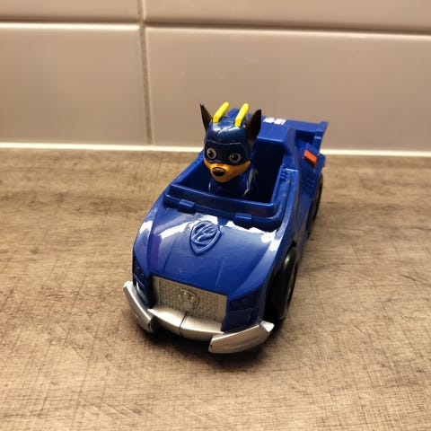 Ryhmä Hau Vainu poliisiauto leikkiauto, hahmoa ei saa irti, on kiinni autossa.