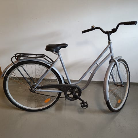 Juuri huollettu siisti polkupyörä korilla. 28"