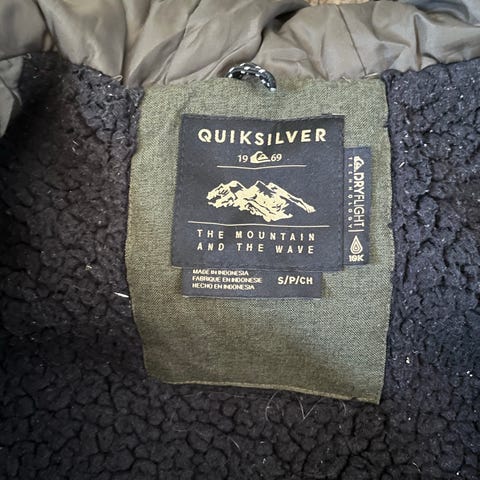 Quiksilver Talvitakki mustassa värissä, valmistettu polyesteristä. Koko S. Soveltuu ulkoiluun talvikaudella. Takissa on huppu ja vetoketjutasku rinnassa. Lipputasku vas.hihassa. tuuletusaukot hihoissa ja sivuissa, kiristysnauhat hupussa ja helmassa. Todella siisti, rintatasku ja kaksi taskua edessä. Toimivat vetoketjut. Tarrakiinnitykset hihan suissa. Väri hyvin tummansininen. Maksanut uutena n 180e