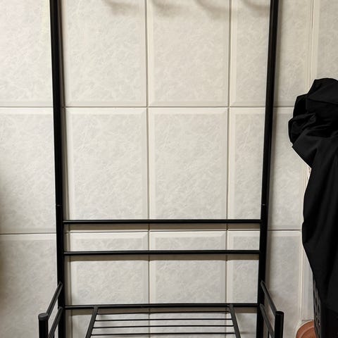 Vahvasta metallista tehty. Virheetön. Naulakon jalusta painaa paljon, joten postitus on tod näk hintava. Mieluiten haku, siis.
