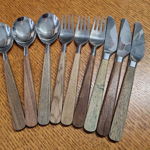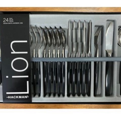 Bertel Gardbergin suunnittelemat Hackmanin Lion de Luxe haarukat. Puuosat ovat hyvässä kunnossa, pientä värieroa niissä kuitenkin on. Hinta viidelle haarukalla on 45 euroa, yksittäin 12 euroa/ kpl. Kulkeutuu omien menojen mukana Joensuuhun.